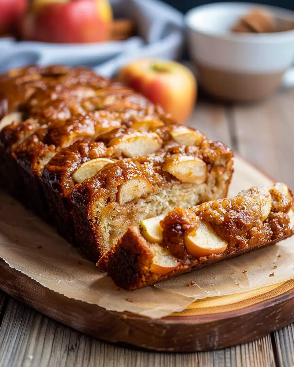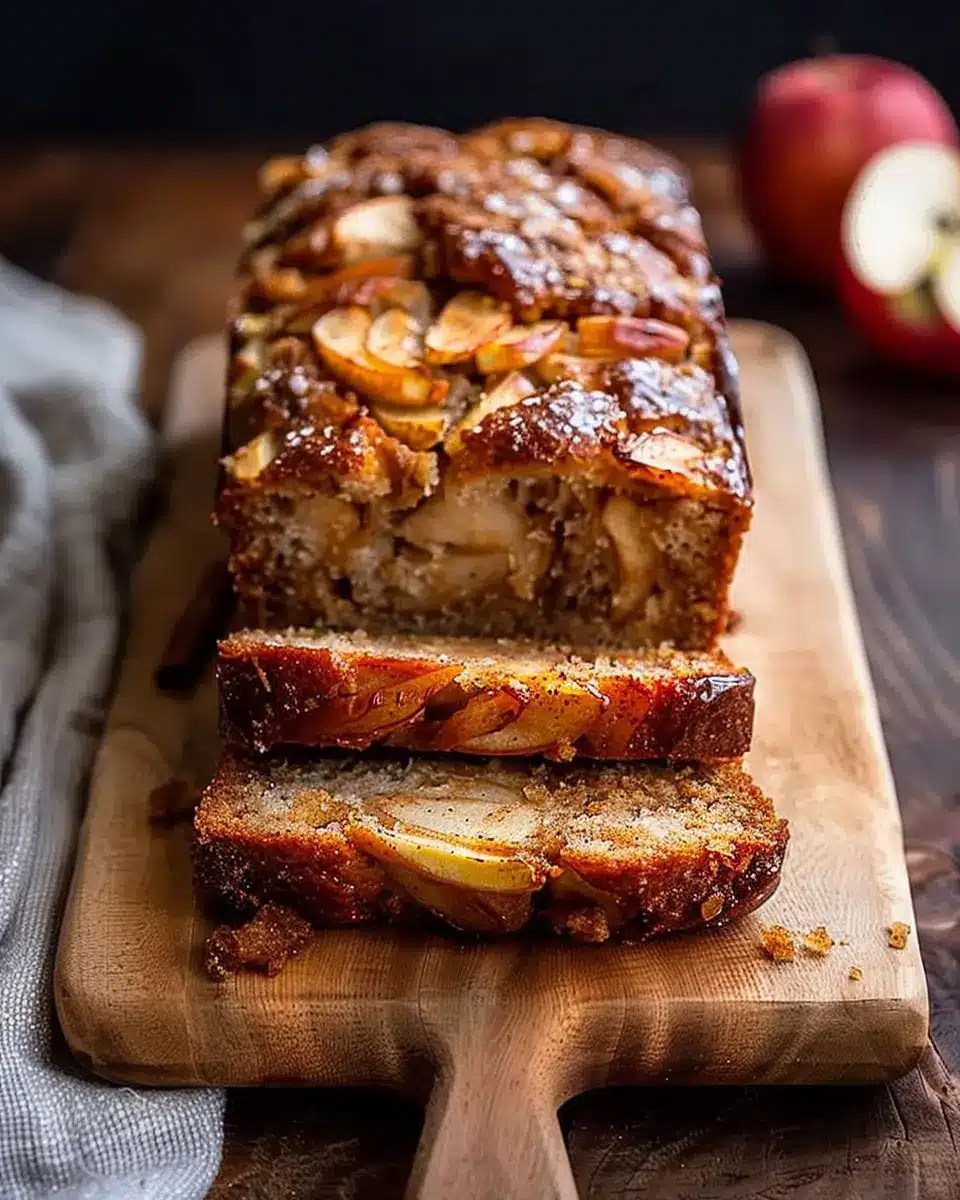 Un délicieux pain de petit-déjeuner aux pommes et à la cannelle, parfait pour les matins réconfortants.