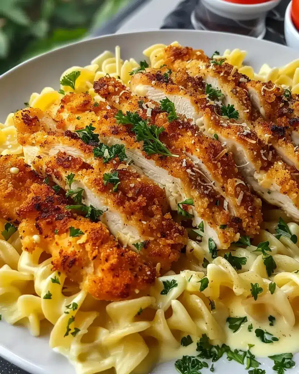 Poulet croustillant avec pâtes crémeuses : Recette facile et savoureuse