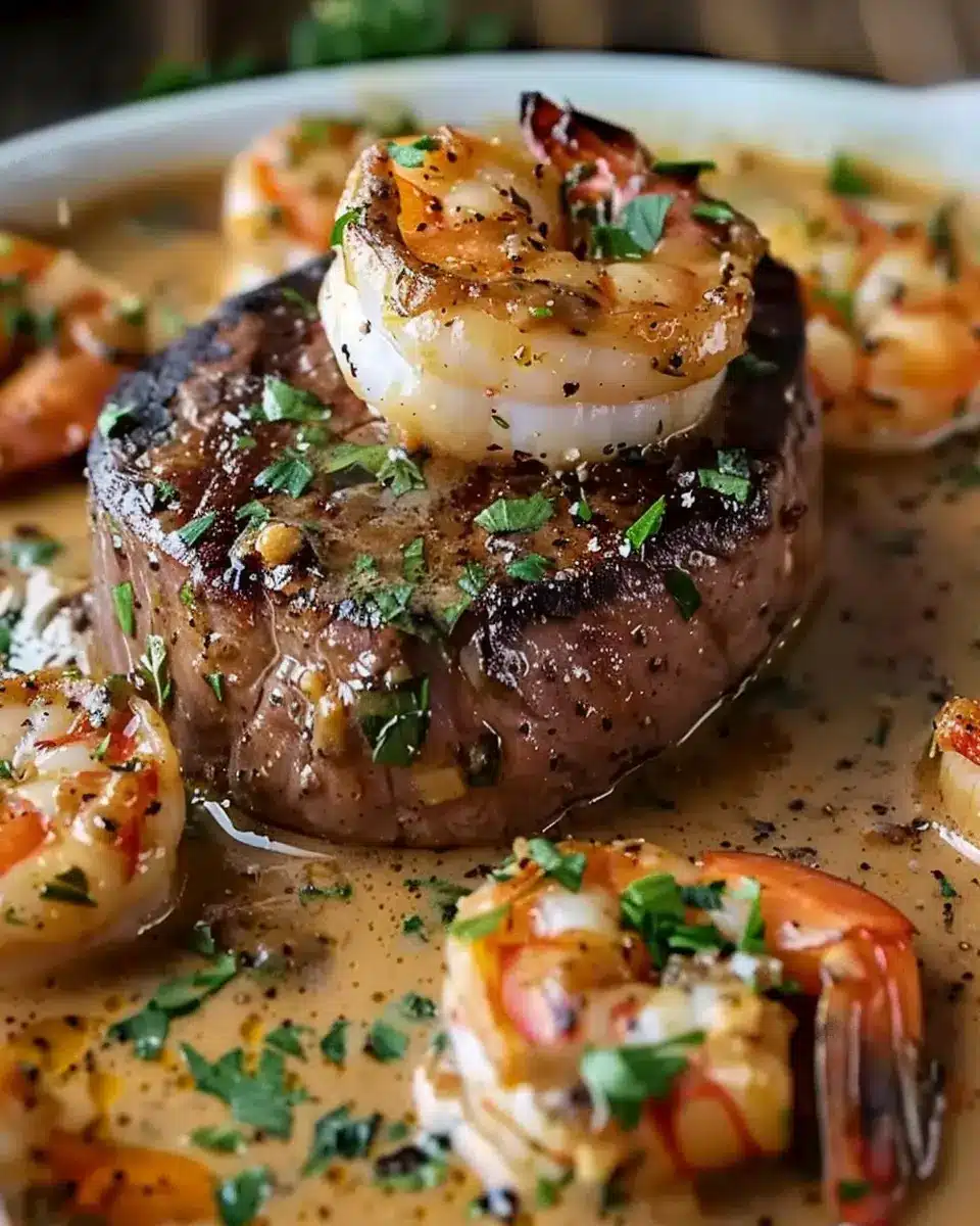 Variations du Steak dans une Sauce Crémeuse aux Crevettes Cajun