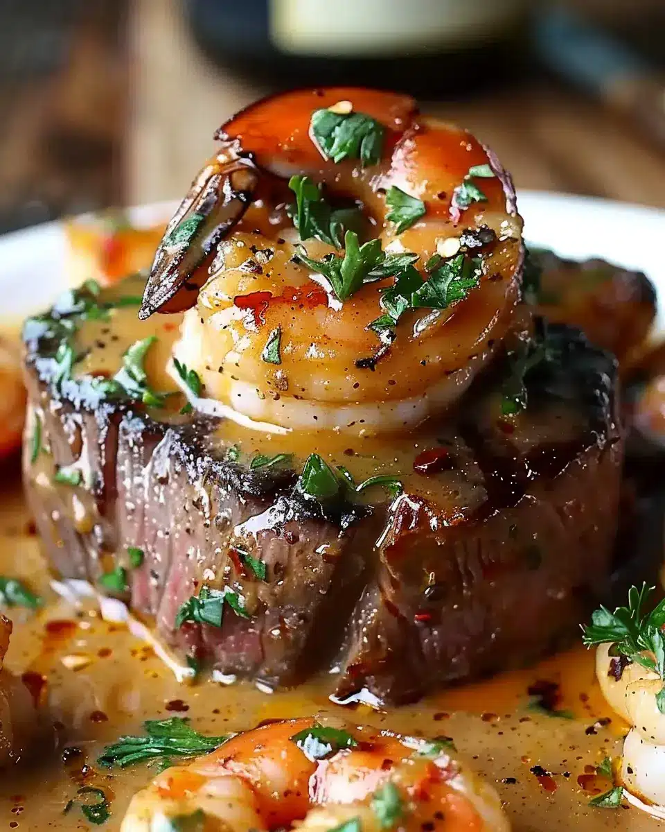 Découvrez comment préparer un steak tendre nappé d’une sauce crémeuse aux crevettes cajun, parfait pour un repas réconfortant.