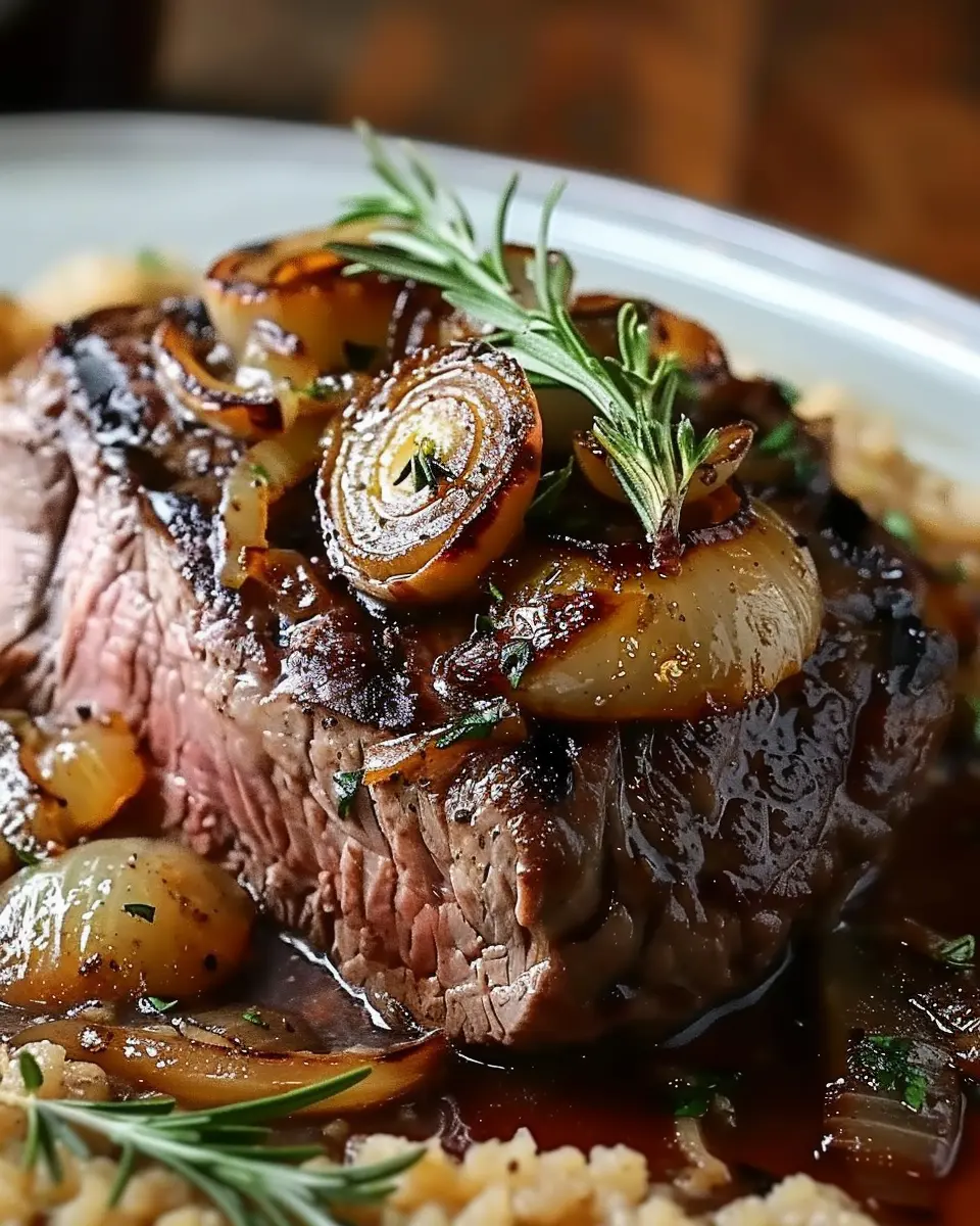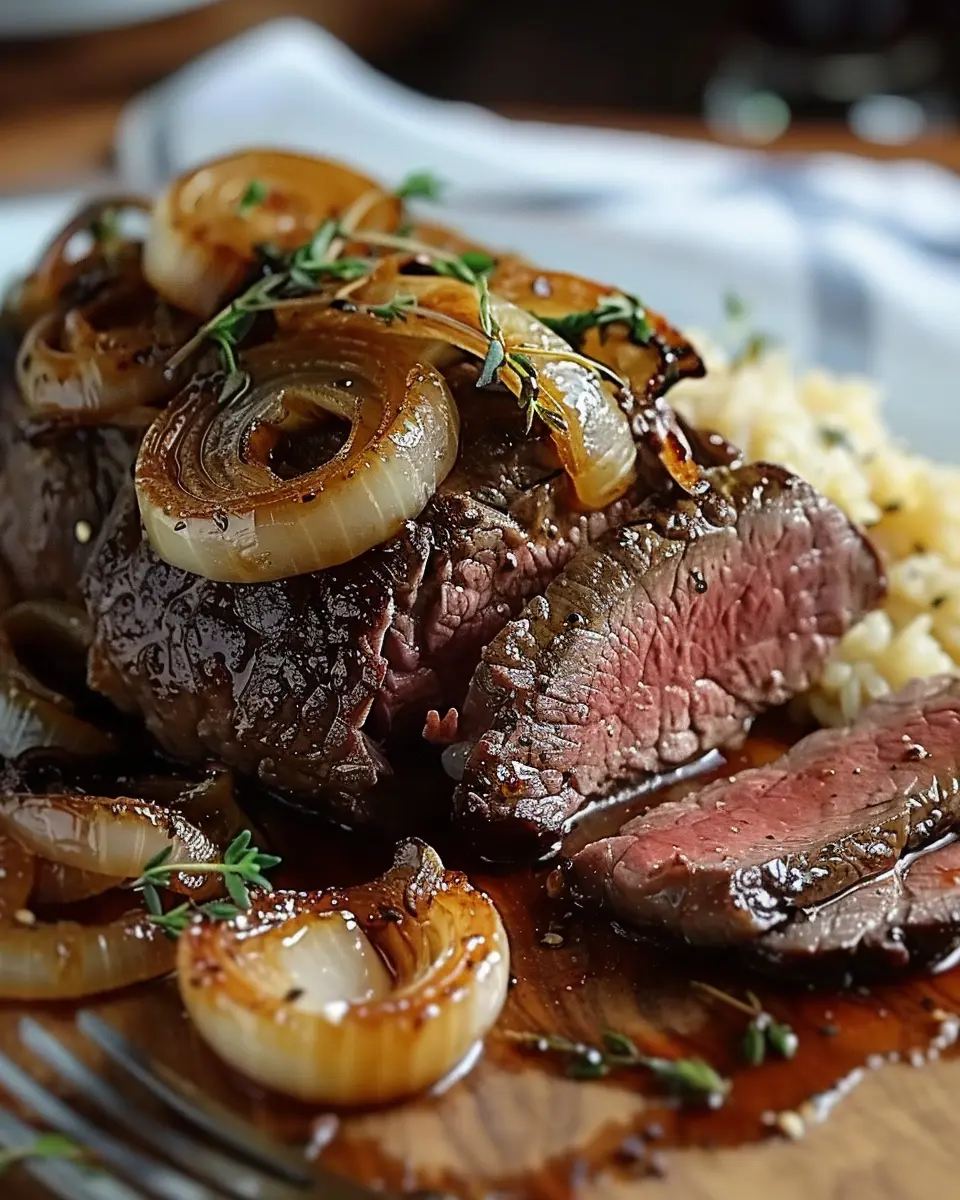Cela permet à la viande de s’imprégner des arômes riches et des saveurs des oignons. En attendant, vous pourriez préparer un accompagnement, comme des pommes de terre rôties ou des légumes de saison, pour compléter ce plat.